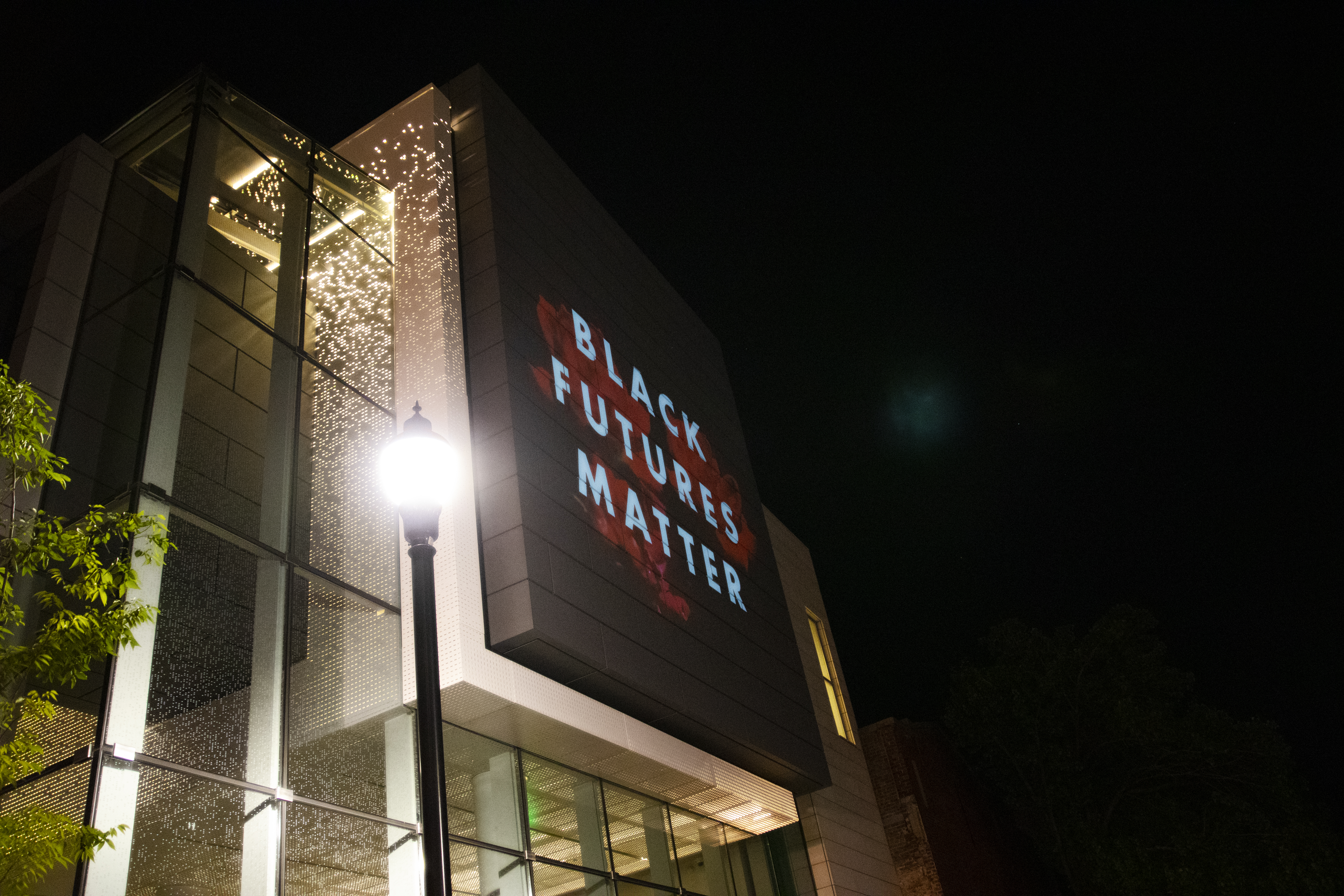 In honor of Pride Month: A projection installation featuring queer activists Bayard Rustin, Cece McDonald, James Baldwin, Lena Waithe, Nina Simone, and Angela Davis was displayed on the Asheville Art Museum as well as portraits of some of the souls who were stolen in 2020.
